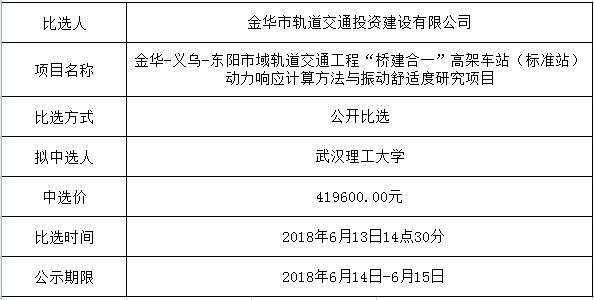 金華市金義東軌道交通有限公司運(yùn)營環(huán)境長效管理系統(tǒng)項目中標(biāo)候選人公示