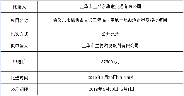 金華市金義東軌道交通有限公司運(yùn)營環(huán)境長效管理系統(tǒng)項(xiàng)目中標(biāo)候選人公示