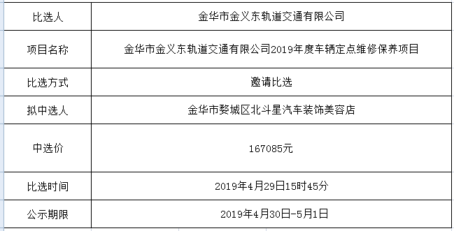 金華市金義東軌道交通有限公司運(yùn)營(yíng)環(huán)境長(zhǎng)效管理系統(tǒng)項(xiàng)目中標(biāo)候選人公示