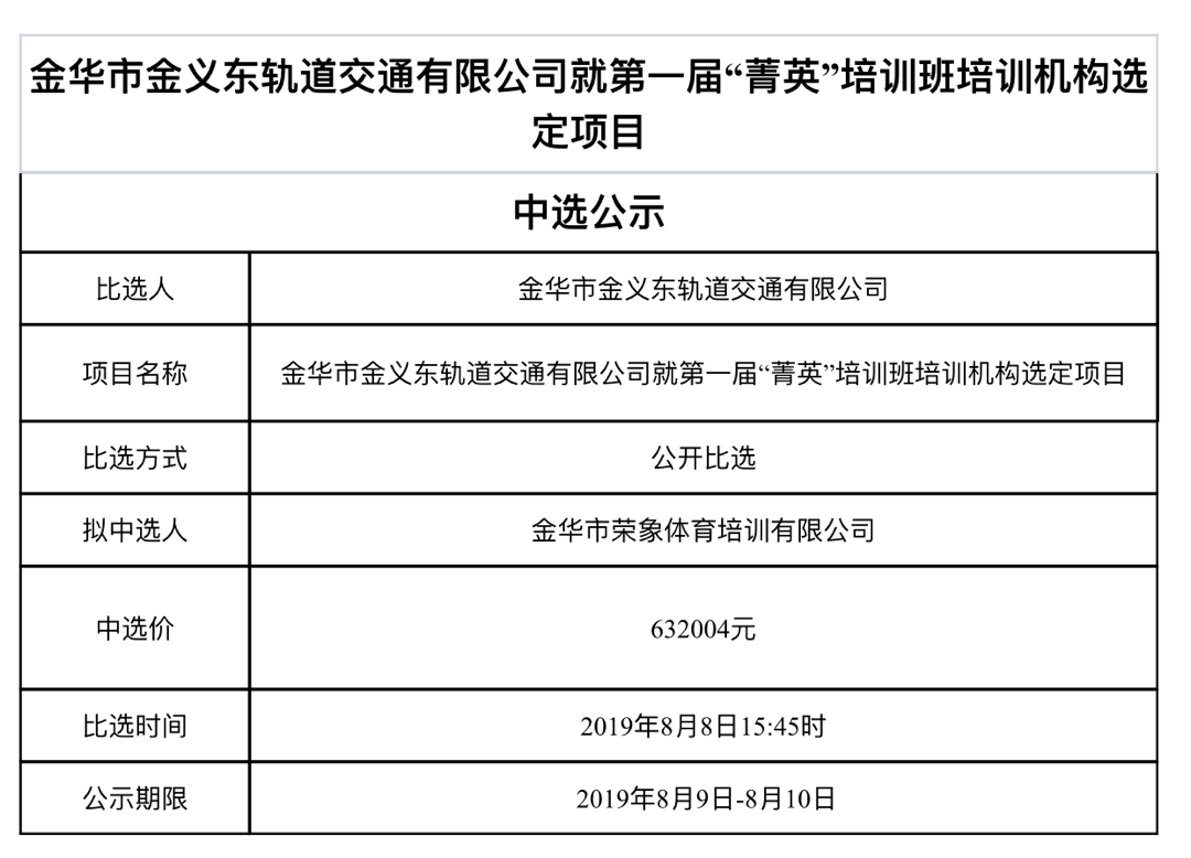 金華市金義東軌道交通有限公司運營環(huán)境長效管理系統(tǒng)項目中標候選人公示