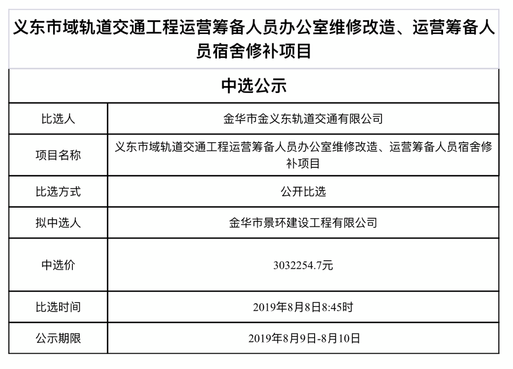金華市金義東軌道交通有限公司運(yùn)營(yíng)環(huán)境長(zhǎng)效管理系統(tǒng)項(xiàng)目中標(biāo)候選人公示