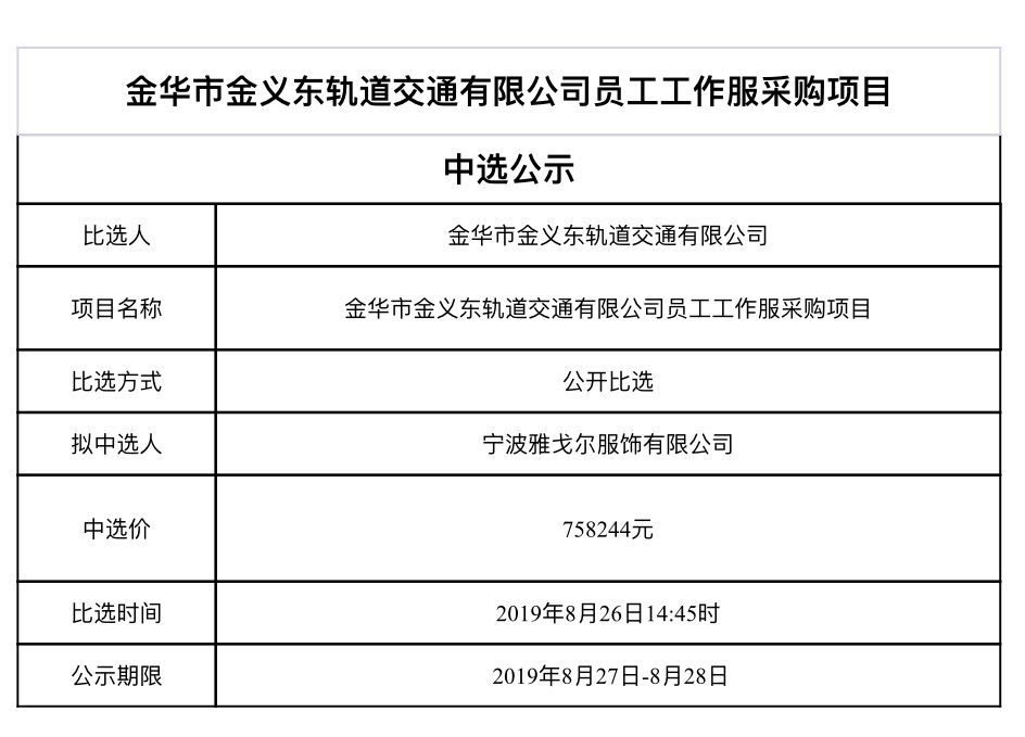 金華市軌道交通控股集團(tuán)物業(yè)管理服務(wù)有限公司關(guān)于運(yùn)營公司三場(chǎng)一段列車保潔勞務(wù)委外服務(wù)采購項(xiàng)目中標(biāo)候選人公示