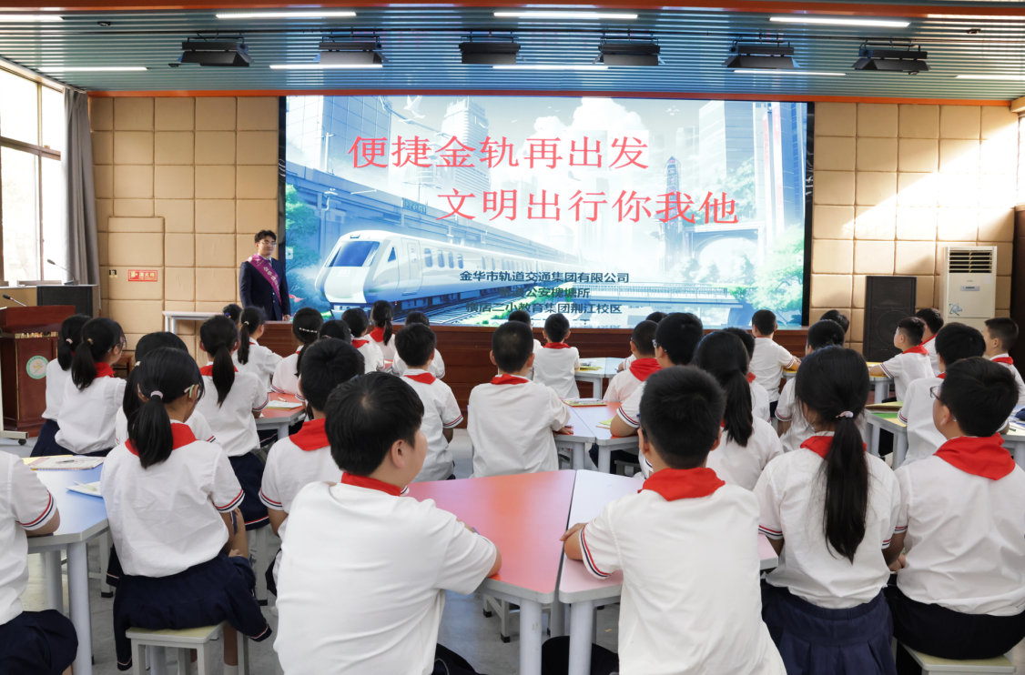 為進(jìn)一步宣傳普及軌道交通乘車知識,增強(qiáng)學(xué)生群體的安全意識,近期,金華軌道交通工作人員走進(jìn)東陽橫店二小教育集團(tuán)荊江校區(qū),開展“便捷金軌再出發(fā),文明出行你我他”安全宣講活動(dòng)。